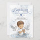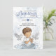 EDITABLE Blue Christening Dove Cute Boy rezando batismo Convite Elegante Dusty Blue Bautizo Convite Cruzado