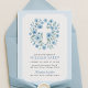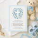 Este convite único para batismo estilo passagens destaca-se com a sua fronteira azul suave, delicada cruz floral de aquarela e uma encantadora estrutura oval revestida com um arco suave. Projetado para meninos, este convite oferece uma reviravolta divertida e caprichosa em papelaria religiosa tradicional. Quer você esteja planejando uma cerimônia na igreja, uma pequena reunião em casa, ou batizar primavera, esta modelo oferece uma maneira criativa de convidar seus convidados para uma bela celebração espiritual.