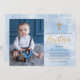 Baptism, fotógrafo moderno e elegante, Convite com fundo azul de aquarela, elegante cruz de ouro, roteiro de tipografia Baptism em letra de tendência e foto.