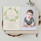 Um delicado arranjo floral de aquarela com lírio de flores e caules do vale, mostrando uma cruz de ouro (digital, não real) são as decorações elegantes para este simples e clássico convite de batismo para bebê e criança com foto, que você pode personalizar e modificar completamente. Um convite de na moda e classe para um bebê ou batismo de criança ou Christening.