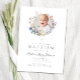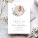 O Elegante Wildflower Wreath Foto Baptism Convite. Para melhores resultados, faça upload de uma imagem quadrada do bebê.