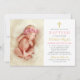 Convites Batismo de Foto de Menina Rosa e Dourada Elegante