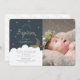O convite para fotos batismo deste menino bonitinho apresenta um fundo azul marinho com estrelas falsas de ouro, lua crescente e nuvens brancas. O verso apresenta padrões de pontos aleatórios dourados falsos em fundo branco. Personalize para suas necessidades. Você pode encontrar mais produtos correspondentes na minha loja.