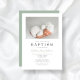 Convite para Batismo Elegante de Foto Verde Sage Personalizado.