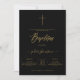 Celebre o dia especial do seu bebê com nosso Simples Black & Dourado Gender Neutral Photo Baptism Invitation. Com tipografia elegante e caligrafia manuscrita, este convite é perfeito para bebês e meninas. O design preto e dourado acrescenta um toque de sofisticação moderna, fazer ideal para um batismo católico ou batismo budista rústico.