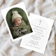 O Convite para Batismo de Fotografia em Arco Negro e Branco apresenta um design de tipografia moderna perfeito para meninos e meninas. Este simples convite batismo com opção fotográfica e caligrafia manuscrita é ideal para eventos batizantes católicos. O elegante tema preto e branco adiciona um toque formal à sua ocasião especial.
