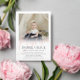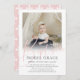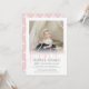 Convite minimalista de batismo com batismo escrito em uma escrita pincel rosa. Adicionar nome e texto em cinzas suaves. Personalize com uma foto do seu bebê. A parte traseira apresenta um padrão branco e pincelado com cruzes.