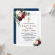 Convites Batismo de Frame Floral Dotado Azul Marinho Borgon