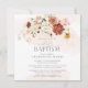 Um convite ao Batismo Sagrado, quadrado moderno, elegante, com um buquê floral de rosas de cor aquosa, de cor branca, em tons de rosa-pincel, amarelo-pantanoso, terracota, branco e queimado, com folhas botânicas neutras e claras. Personalize os detalhes em branco suave, acentuado com uma bela caligrafia moderna com letras. A parte traseira da placa apresenta uma textura de aquarela suave. Copyright Elegant Invites de Anastasia Surridge, todos os direitos reservados.