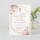 Convite Floral de Batismo de Laço Rosa em espanhol, Convite de laço rosa para Batizado em espanhol