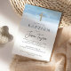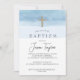 Watercolor Blue Boy Baptism Invitation Com cruz de ouro. Convite para Natal de Fotografia