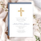 Convocação para Batismo de Menino Azul Com Cruzamento Religioso Personalizado.