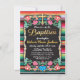 Colorida Fiesta Baptism mexicana e Convite de festas com fundo de tapete aztec. Apresenta papel picado brilhante inspirado em flores, sotaques dourados brilhantes e um fundo do tapete mexicano asteca. Tendo problemas, envie-me um e-mail para tkatz@me.com