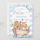 Convites Batismo dos animais de pele de arca azul-Gingham N
