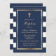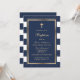 Um convite para o batismo de ouro e azul elegante.