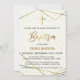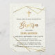 Convite clássico para o Batismo Vintage. Design com fundo floral brilhante, formas geométricas douradas e "Baptism" em escrita caligrafia. Para editar este modelo, clique em personalizar mais.