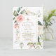 Design de cartão elegante com cor de água rosa, pincel, flores creme e moldura de folhas verdes, cruz de ouro falsa, sobre fundo branco. Na parte de trás, buquê de flores cor-de-rosa. Use a ferramenta Personalizar para adicionar suas informações, alterar fontes, cores da fonte. Para obter itens correspondentes, visite minha nova coleção de celebrações Baptism/Christening.