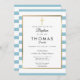 Simples batismo de listras azuis de bebê, convite batizante com uma cruz de ouro com uma elegante borda de folha de ouro que enquadra seus detalhes definidos na tipografia moderna. Projetado por Thisnotme©