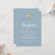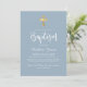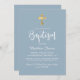 Convites Batismo Dourado Cruz Azul Dusty com Script Moderno
