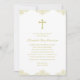 Este batismo elegante, sem ístex ou batizante convite apresenta uma cruz de ouro e um ornamentado de ouro decorativo, design, ao longo das bordas superior e inferior. O texto pode ser alterado para se adequar a uma Primeira Comunhão em vez de um batismo ou batizar.