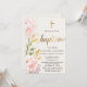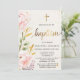 Ouro floral elegante e convite para Batismo cor-de-rosa. Design com fundo de flores rosadas rústicas, com folhas de ouro e batismo, em modernas inscrições manuscritas à luz de fundo cor-de-rosa. Personalize com seus detalhes batismos abaixo em uma mistura chic de serif e tipfaces escritas à mão. Perfeito para primavera, menina de verão, Batismo.