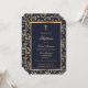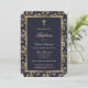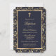 Convites de batismo floral, azuis e dourados, apresentando um quadro floral dentro a dourado.