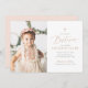 Convide familiares e amigos a celebrarem um batismo com esse convite elegante, apresentando um design minimalista com elementos tipográficos dourados e um fundo cor-de-rosa e robusto.