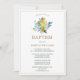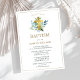 Este elegante e simples convite batismo apresenta uma bela coloração aquática, azul-esverdeada, e uma cruz dourada sobre fundo branco. Use as Ferramentas de Design para personalizar as cores de texto, fonte e fundo. Também disponível como download digital.