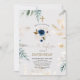 Convites Batismo Dourado Floral Azul-Aquarela Encantadora