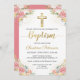 Convites Batismo Dourado Floral de Coral Rosa Elegante