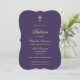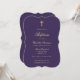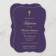Púrpura elegante e batismos dourados com uma cruz dourada e uma letra elegante.