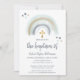 Convites Batismo Dusty Blue e White Boho | Arco-íris