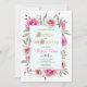 Flores cor-de-água rosa quente batismo feminino e convite floral de primeiro aniversario. Este belo design apresenta um quadro floral feito de flores rosa-quentes e folhas suculentas de fúchsia e seu texto. As palavras "batismo" e "primeiro aniversario" estão em ouro, em letra decorativa, com buquês florais, enquanto o nome da menina está cor-de-rosa na tipografia de scripts. Em vez da letra "I" na palavra "Batismo, há uma cruz dourada.