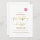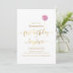 Um bonito balão cor-de-rosa flutua acima deste batismo combinado e o primeiro convite de aniversário com uma falsa caligrafia dourada. O balão cheio de aquarela define a cena para seus hóspedes se juntarem a você para a festa da sua menina após sua cerimônia de batizado. A ilustração é única para o Concierge da papelaria, e as palavras "batismo" e "primeiro aniversário" são de tintas de impressão e não são metálicas ou toldadas.