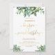 Um batismo combinado e um convite para o segundo aniversário adequado para uma menina ou para um rapaz com uma caligrafia falsa em ouro. O buquê de aquarela verde define a cena para seus hóspedes se juntarem a você para o batizado do seu bebê em qualquer lugar. A ilustração é única para o Concierge da papelaria, e as palavras "batismo" e "segundo aniversário" são de tintas de impressão e não são metálicas ou toldadas.