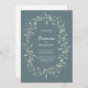 Este convite de batismo rústico e de cor azul é perfeito para um candidato a batismo que procura incorporar uma sensação natural e terrestre ao seu dia especial. A tipografia adiciona um toque de elegância e delicadeza. As fontes utilizadas são elegantes e eternos, fazer perfeito para um batismo formal.