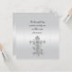 Convites para o batismo Elegante Silver White Satin Cross - Convide seus convidados com um cartão de cetim branco prateado impressionante com um design de cruz de pérolas lindo. O texto de exemplo contém o local para os detalhes de Natal no verso.
