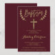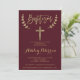 Convites Batismo elegante Dourado burgundy vermelho