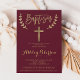 Faux dourado tipografia elegante burgundy vermelha com batismo dourado. Um moderno convite de festas de batismo com esta moderna, simples, elegante e elegante tipografia de pincel de ouro amarelo-escada em um fundo vermelho-burlando. Perfeito para uma festa simples, elegante e moderna. Se precisar de algum texto mudado e personalizado, não hesite em entrar em contato comigo!