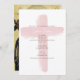 Um belo design do batismo com um Crucifixo rosa pincelado e um ícone ortodoxo grego da Virgem Maria no verso da carta. Um design religioso ideal para o Natal Batismo de uma menina. Papelaria e decoração correspondentes podem ser vistos nesta coleção de designs.