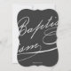 Todos os detalhes personalizados de texto e convite estão localizados na metade inferior do cartão. A parte traseira da placa tem um design de padrão de caligrafia na moda.