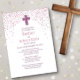 Um projeto moderno e contemporâneo de batismo para o seu grande dia! O confete rosa e roxo e a simples tipografia dão a esta design uma vibração clássica e divertida.