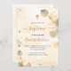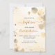 Um fundo de cor aquosa de ouro decorado com ouro eucalipto e pó dourado falso. Personalize e o nome e os detalhes da cerimônia. Letras pretas e ouros coloridas. Sexo neutro. Traseira: fundo de cor d'água do ouro