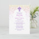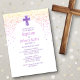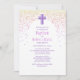 Um projeto moderno e contemporâneo de batismo para o seu grande dia! O confete rosa e roxo e a simples tipografia dão a esta design uma vibração clássica e divertida.