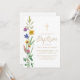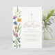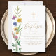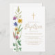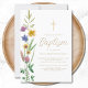 Este convite floral do Baptismo é decorado com flores silvestres de aquarela e uma cruz. Facilmente personalizável. Original Watercolor © Michele Davies.