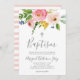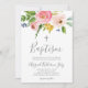 Batismo Convite Linda Buquê Floral de Aquarela em fundo branco torna este convite espantoso! Adicione os detalhes do evento usando o formulário modelo. O texto adicional pode ser adicionado à parte traseira, se necessário, usando o recurso Personalizar.