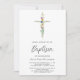 Este convite de Batismo floral elegante é decorado com uma cruz de flores silvestres e tipografia script.
