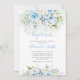 Convite para o batismo floral azul de aquarela. Itens correspondentes disponíveis.