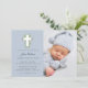 Este belo batismo de fotos azul e branco ou um convite batizante apresenta uma bela cruz com verde-aquarela.