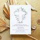 Elegante Greenery Floral Botanical Cross Baptism Invitation apresenta uma simples cruz branca pintada manualmente flores e verde com sua informação de batismo Invitation. Personalize editando o texto nas caixas de texto fornecidas. Elaborado por ©Evco Studio www.zazzle.com/store/evcostudio